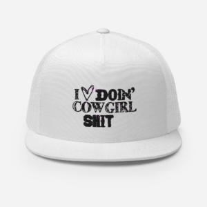 Flatbill Trucker “I LOVE DOIN’ COWGIRL SHIT” (White)